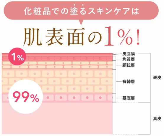 スキンケア化粧品がケアできるのは、肌全体のうちたった1%の肌表面だけです。